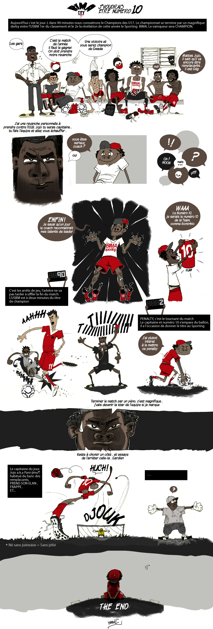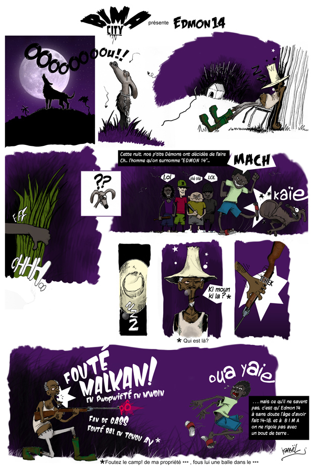Une BD inédite qui est un mélange d'Afrique de l'ouest, de Floride et de Seine-Saint-Denis, sous un soleil brûlant et une humidité insoutenable. Des amis et des vié kô, chien créyol, jèn ti bwouay etc., le décor est peint...Les problèmes sociaux autours des jeunes, le foot, la fête, la violence, la mer tout y est.
